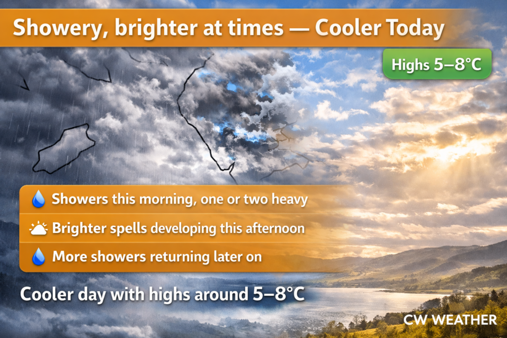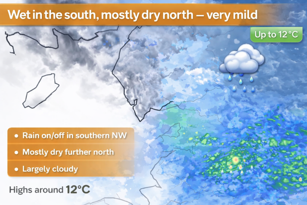 Southern areas of the North West will have a fairly wet day, with rain on and off at times.