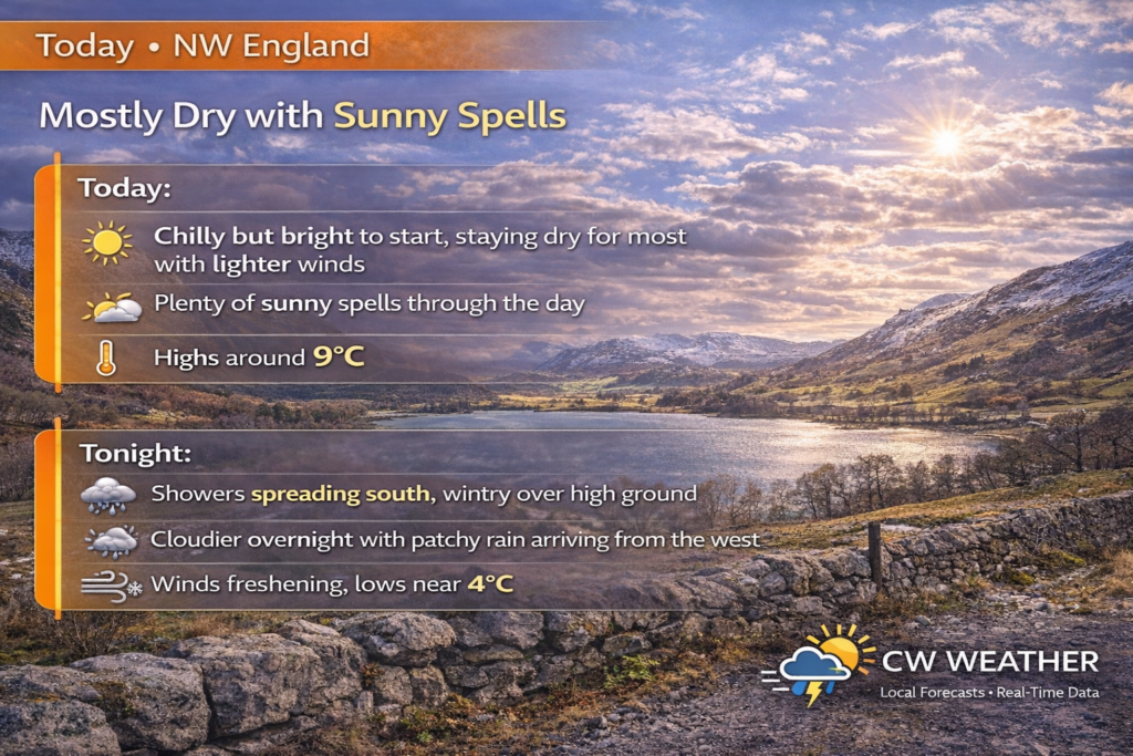 It’s a chilly but bright start, and for most places it stays dry