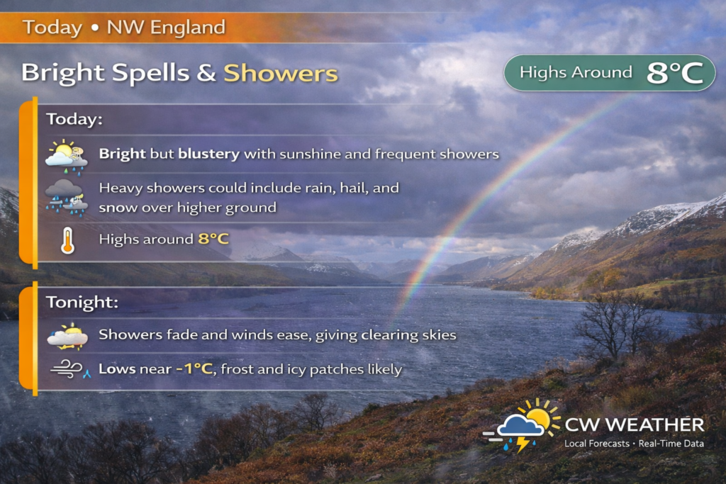 Highs: Around 8°C • Overnight: Around -1°C