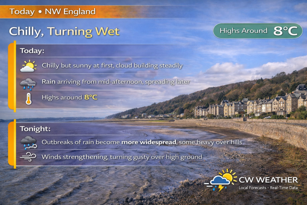 but rain will begin to arrive from mid-afternoon across Cumbria