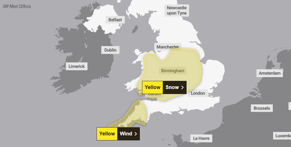 Central and Southern UK – Heavy Rain, Snow & Wind